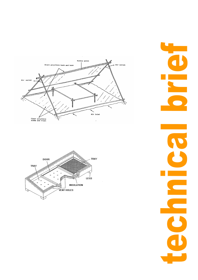 the sun. The food to be dried is placed on a rack above the ground. Tent dryers provide protection