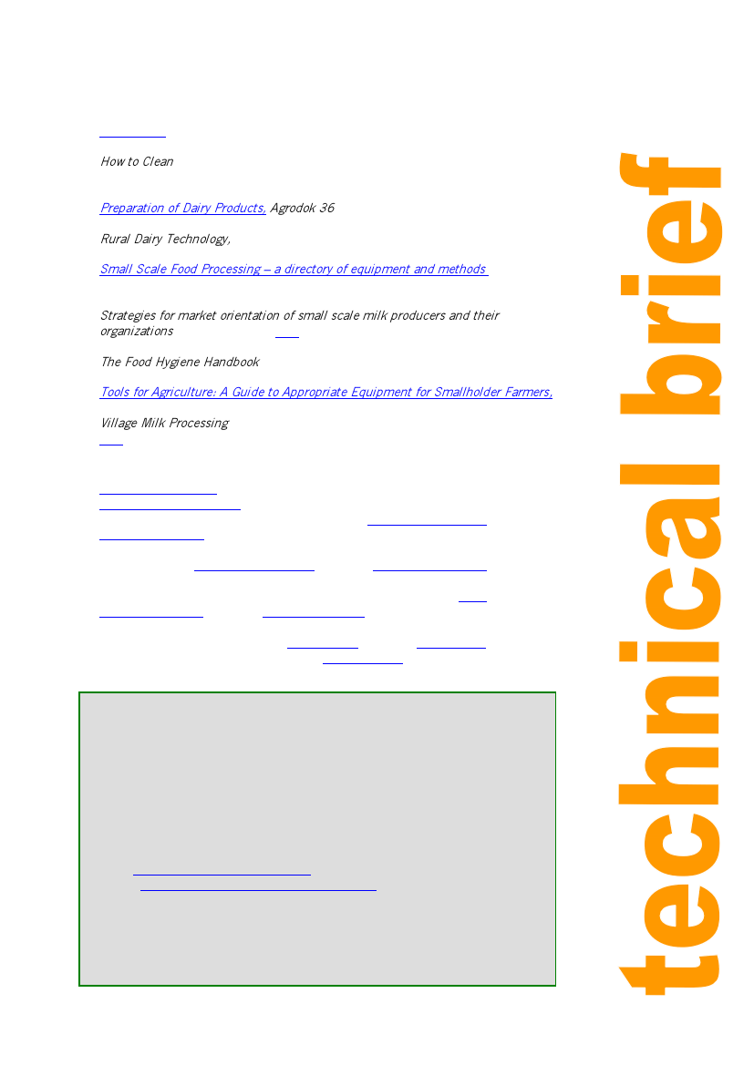 www.fao.org and search ‘dairy processing book’ for a list of publications that can be