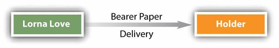 An instrument payable to bearer—bearer paperA negotiable instrument payable to whoever has possession.—can be negotiated simply by delivering it to the transferee (see Figure 14.1 "Negotiation of Bearer Paper"; recall that “Lorna Love” is the proprietor of a tennis club introduced in Chapter 13 "Nature and Form of Commercial Paper"): bearer paper runs to whoever is in possession of it, even a thief. Despite this simple rule, the purchaser of the instrument may require an indorsement on some bearer paper anyway. You may have noticed that sometimes you are requested to indorse your own check when you make it out to cash. That is because the indorsement increases the liability of the indorser if the holder is unable to collect. Chung v. New York Racing Association (Section 14.4 "Cases") deals with issues involving bearer paper.