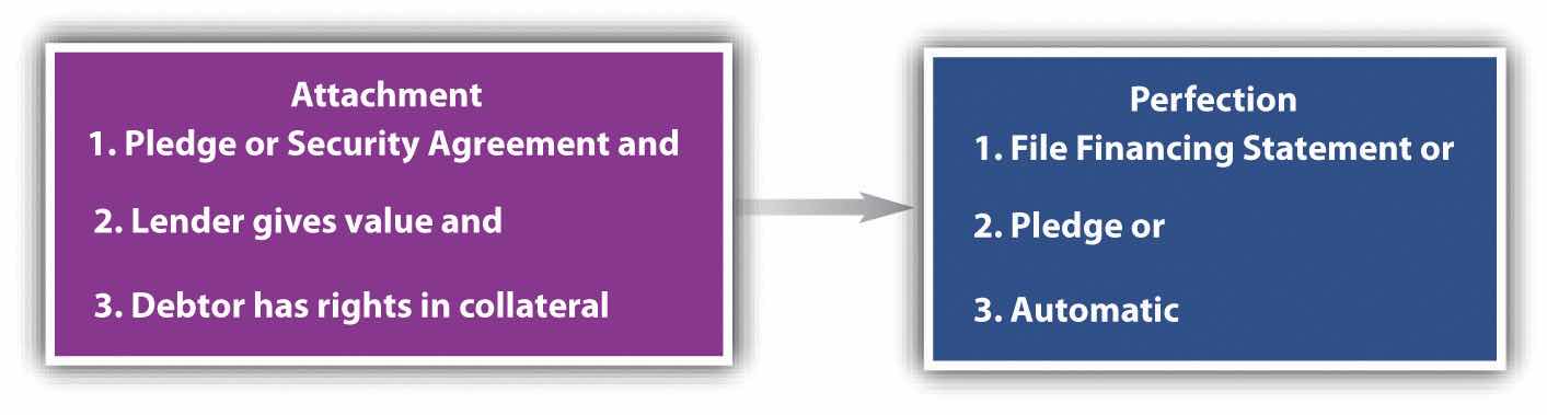As between the debtor and the creditor, attachment is fine: if the debtor defaults, the creditor will repossess the goods and—usually—sell them to satisfy the outstanding obligation. But unless an additional set of steps is taken, the rights of the secured party might be subordinated to the rights of other secured parties, certain lien creditors, bankruptcy trustees, and buyers who give value and who do not know of the security interest. PerfectionThe process by which a secured party announces to the world her secured interest in particular goods. is the secured party’s way of announcing the security interest to the rest of the world. It is the secured party’s claim on the collateral.