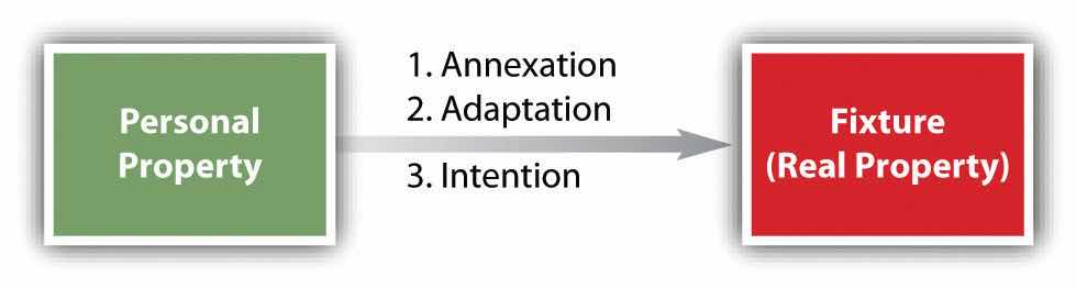 Obviously, no clear line can be drawn between what is and what is not a fixture. In general, the courts look to three tests to determine whether a particular object has become a fixture: annexation, adaptation, and intention (see Figure 22.2 "Fixture Tests").