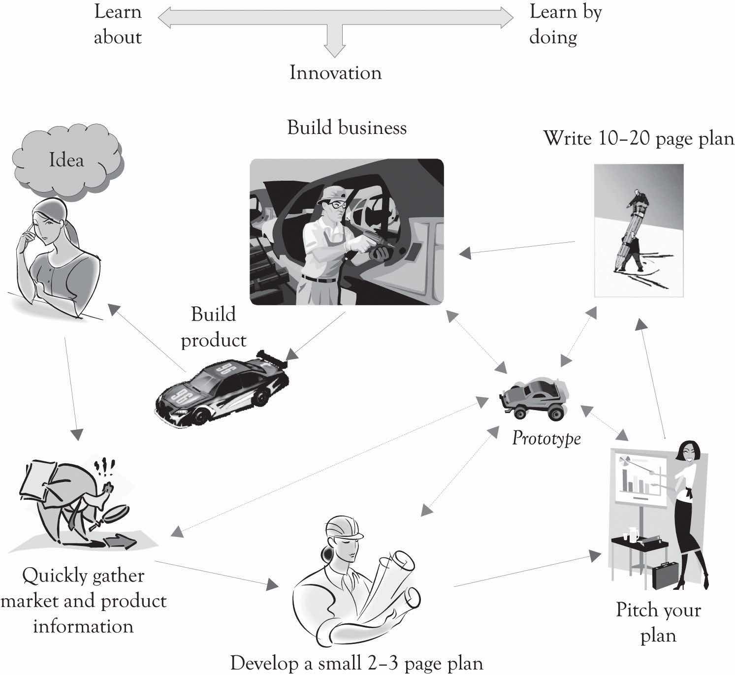 As we shall see throughout the book, the magic sauce of innovation involves learning and experimentation. Weaving together the little ahas through a continuous learning process is the basis of interesting ideas and innovation. As illustrated in Figure 2, learning-about and learning-by-doing are the drivers of innovation and new product development. This process involves the continuous mixing together of collaboration, searching for ideas, and then making things. As noted in Chapter 6 "Facilitating Creativity and Innovation", the little ahas eventually lead to the big aha and the big aha is not necessarily the solution to the original problem. The big aha is simply illuminating, insightful, and innovative. Peter Sims suggests the placing of little bets to explore possibilities and engage in innovation.Sims (2011). Little bets are essentially low-risk investments with a chance of failure that incorporate the development and testing of ideas. Placing little bets leads to little ahas and eventually to the big aha. Placing little bets are actually investments in what are referred to as real options, and that topic will be covered in depth in Chapter 14 "Re-priming the Business Using Real Options Concepts".
