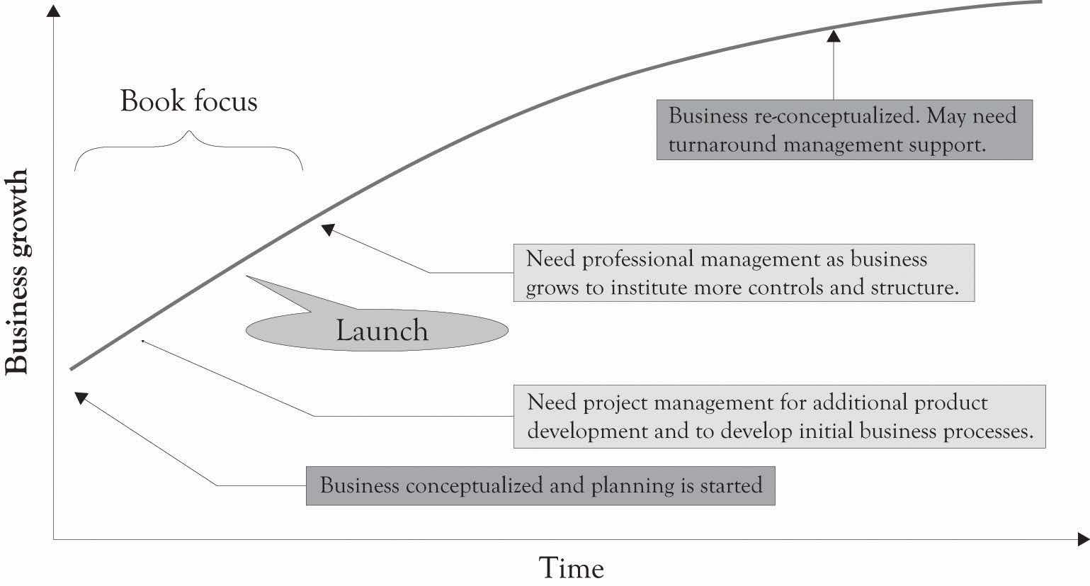 This book is concerned primarily with the early stages of conceptualizing new ideas that can enhance existing business models and subsequently lead to the creation of new businesses (see Figure 3). The material in this book has been in development over the last 10 years in a course on technology management and development. One purpose of the course is to understand how technologies unfold and how they guide the strategic direction of contemporary business. The course involves reading and discussing over a dozen cases a wide variety of successful, emerging, and unsuccessful businesses. The cases used in the course are usually matched to chapter topics. The case studies and class dialog coupled with the reading of the book chapters are part of the learning-about process. The learn-by-doing part of the course involves the development of a business plan for a start-up company.