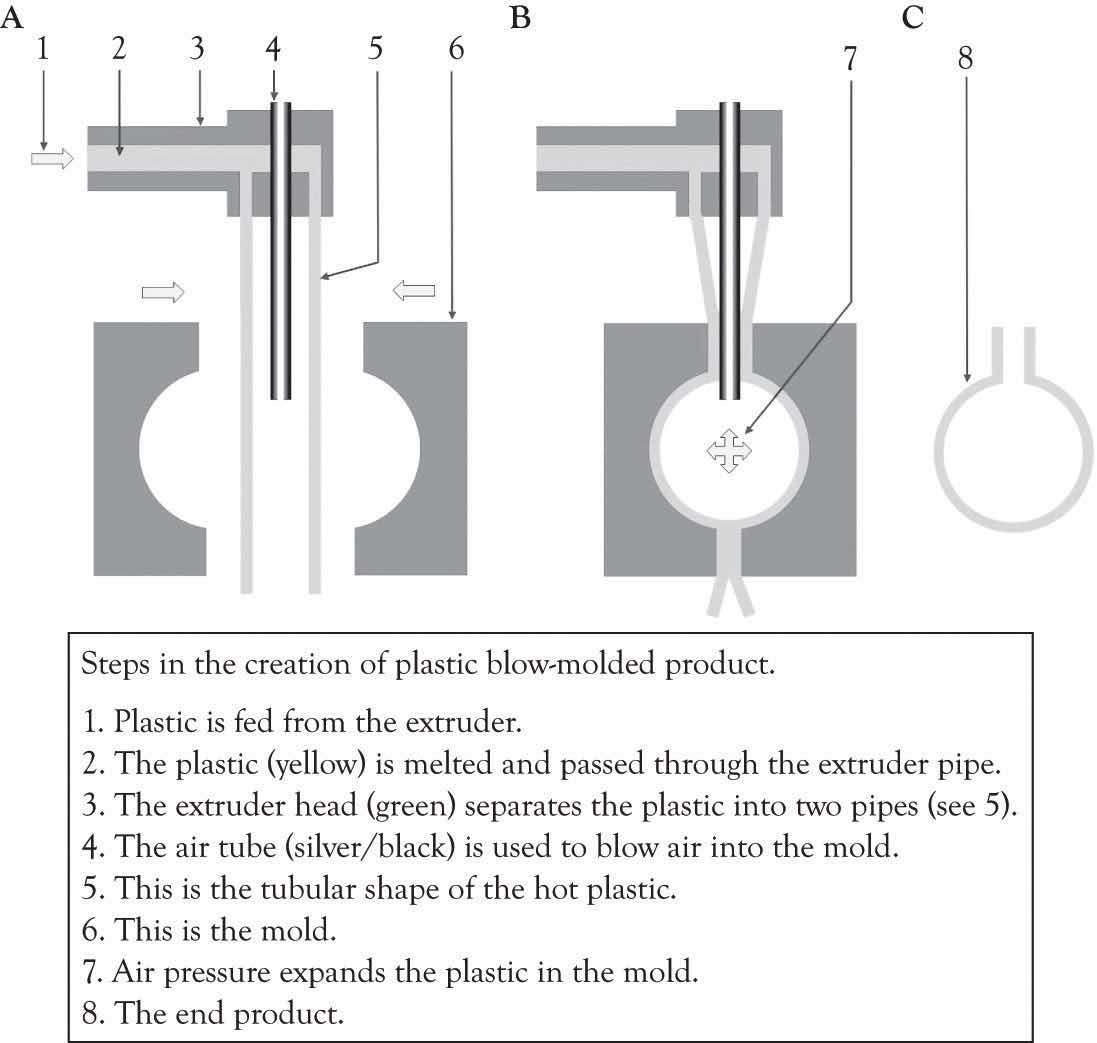 Most of their bottles are being produced overseas and because they change the design of the bottles every 2 months, the cost of design, development, and delivery is very high. They are exploring the idea of manufacturing the bottles at each of their five bottling centers in the USA. This will require the purchasing of injection blow molding equipment (see Figure 14.3 "Blow Injection Molding Diagram", for an overview of the blow molding process).