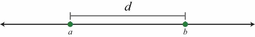 One application of the absolute value is to find the distance between any two points on a number line. For real numbers a and b, the distance formula for a number lineThe distance between any two real numbers a and b on a number line can be calculated using the formula . is given as,