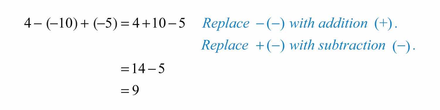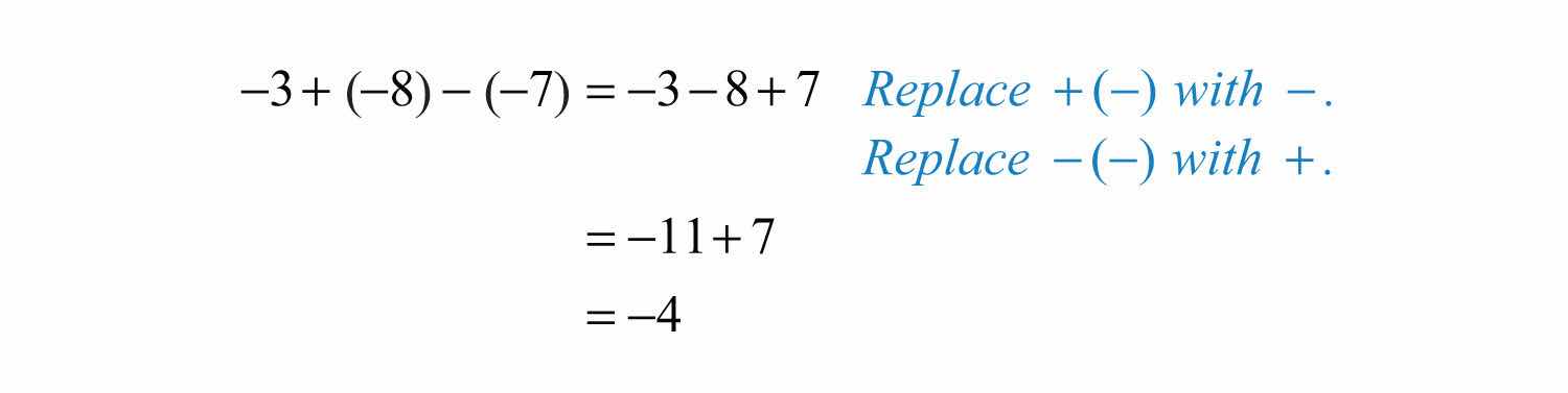 We will use these properties, along with the double-negative property for real numbers, to perform more involved sequential operations. To simplify things, we will make it a general rule to first replace all sequential operations with either addition or subtraction and then perform each operation in order from left to right.