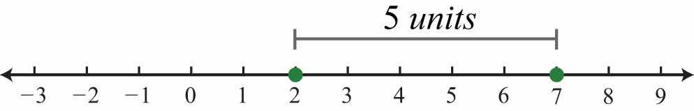 Example 9: Determine the distance between 2 and 7 on a number line.