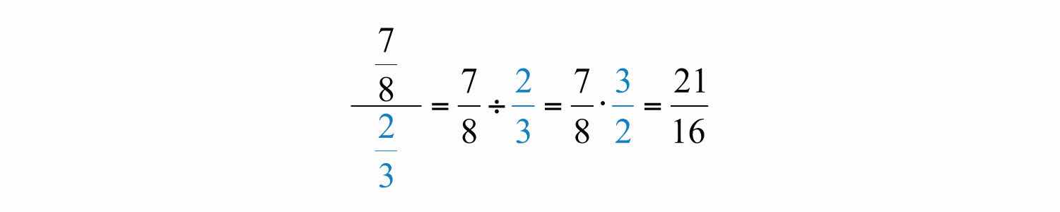 The latter is an example of a complex fractionA fraction where the numerator or denominator consists of one or more fractions., which is a fraction whose numerator, denominator, or both are fractions.