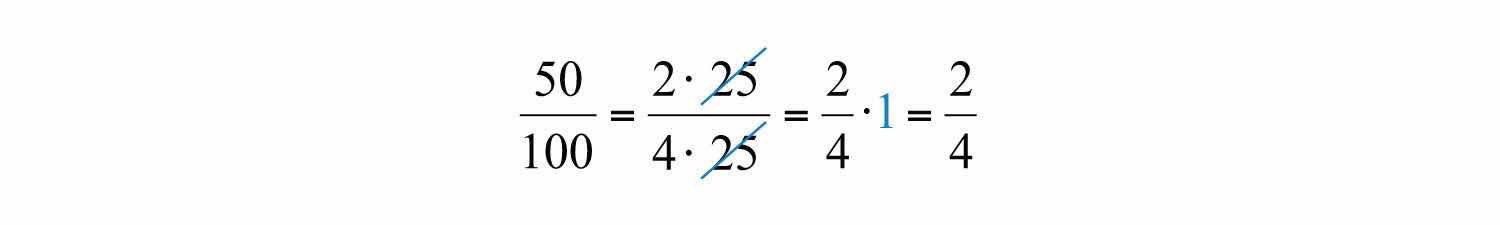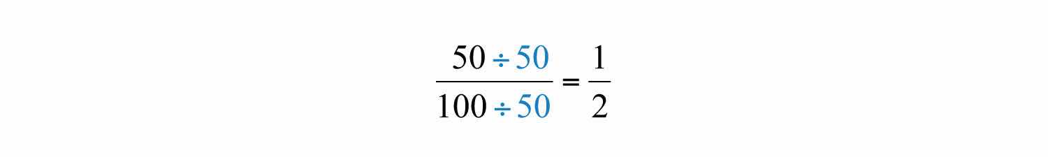 We achieve the same result by dividing the numerator and denominator by the greatest common factor (GCF)The largest shared factor of any number of integers.. The GCF is the largest number that divides both the numerator and denominator evenly. One way to find the GCF of 50 and 100 is to list all the factors of each and identify the largest number that appears in both lists. Remember, each number is also a factor of itself.