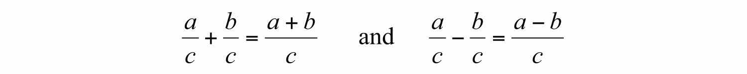 Adding or subtracting fractions requires a common denominatorA denominator that is shared by more than one fraction.. In this section, assume the common denominator c is a nonzero integer.
