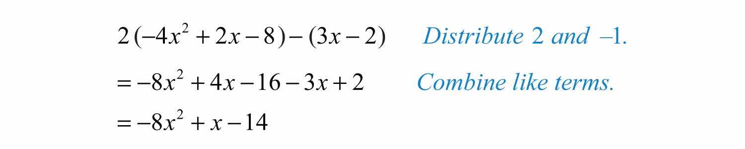 Solution: Multiply each term within the parentheses by −1 and then combine like terms.