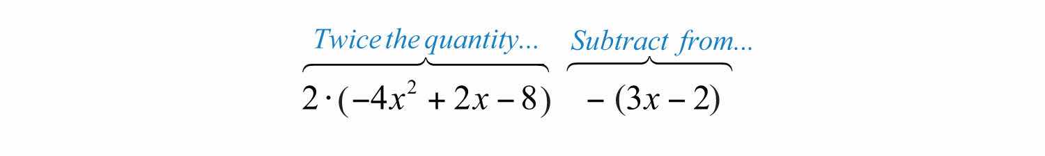 Solution: The order of operations requires that we multiply before subtracting. Therefore, distribute −2 and then combine the constant terms. Subtracting 5 − 2 first leads to an incorrect result, as illustrated below: