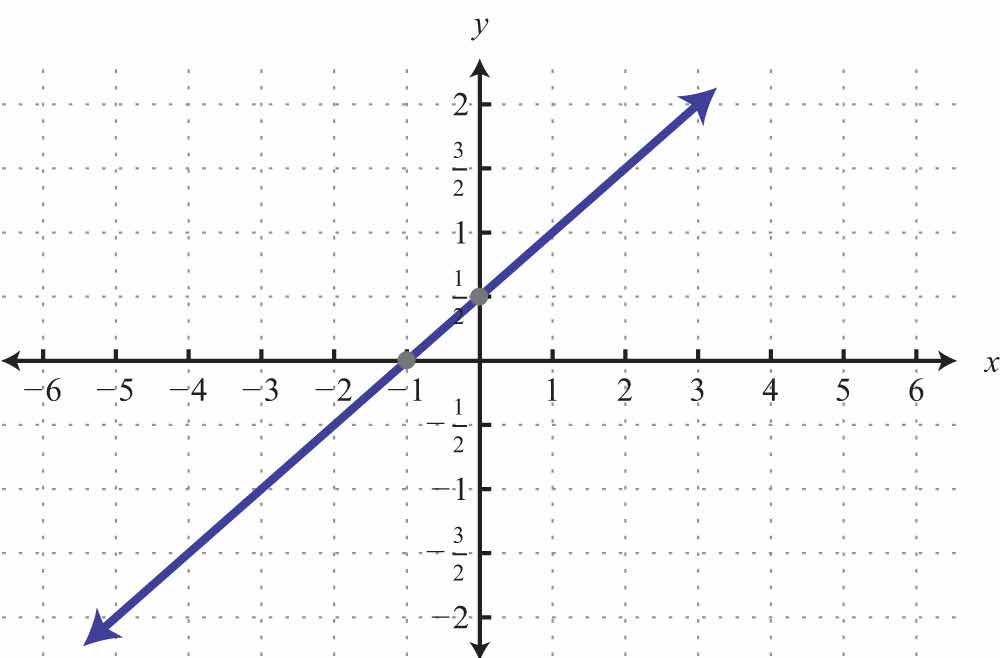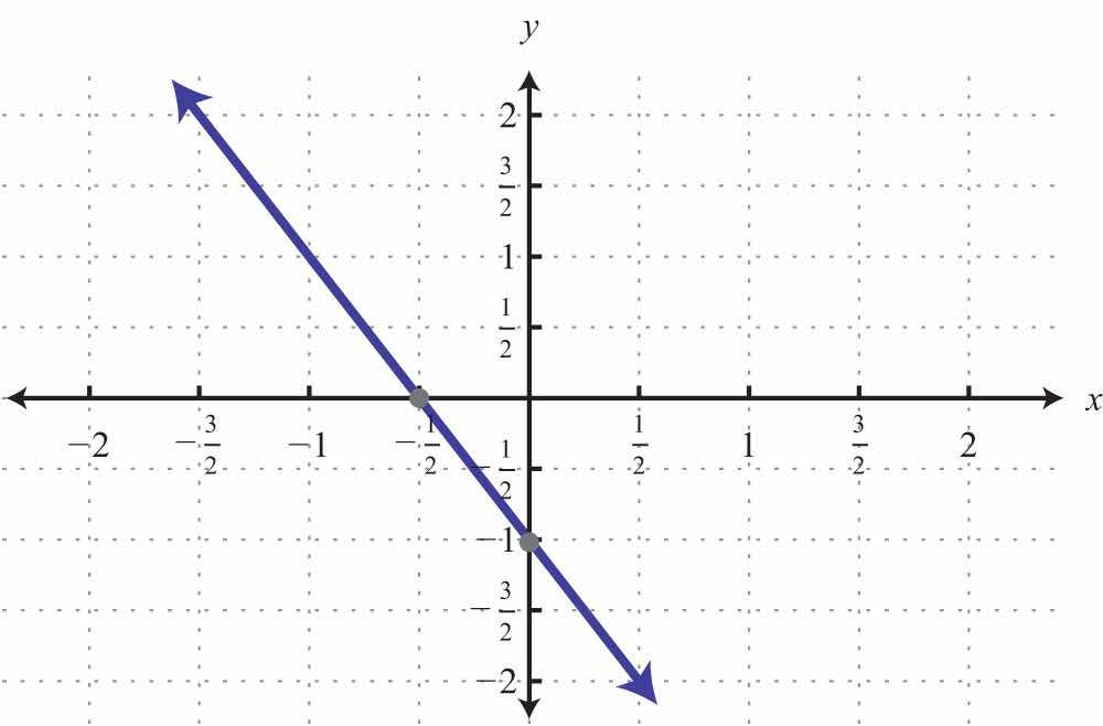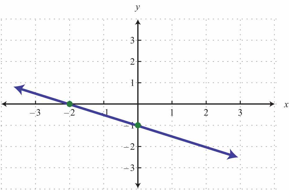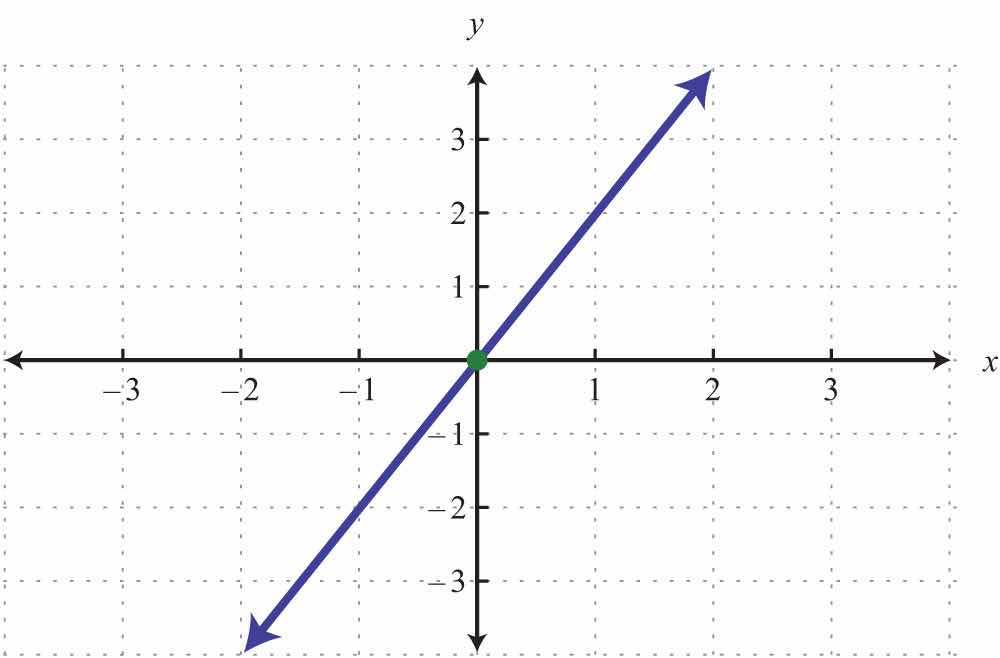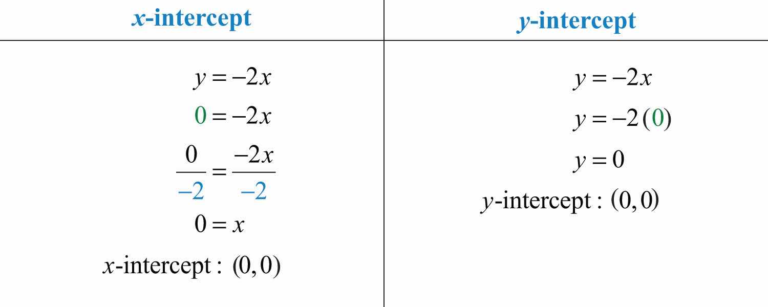 Here the x- and y-intercepts are actually the same point, the origin. We will need at least one more point so that we can graph the line. Choose any value for x and determine the corresponding value for y.
