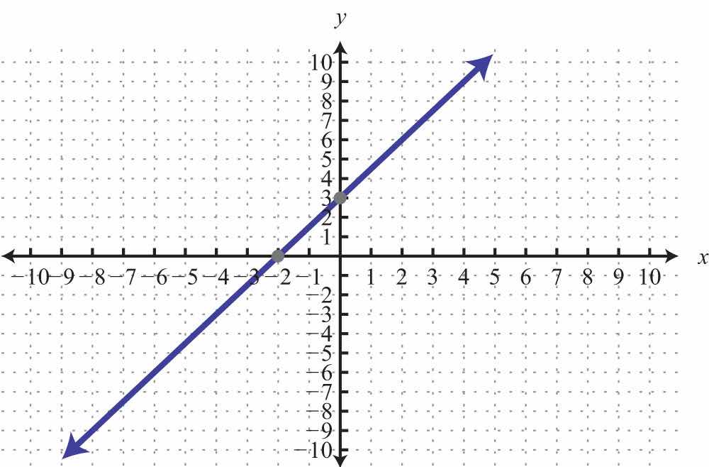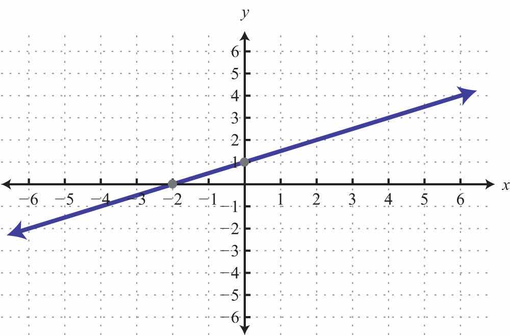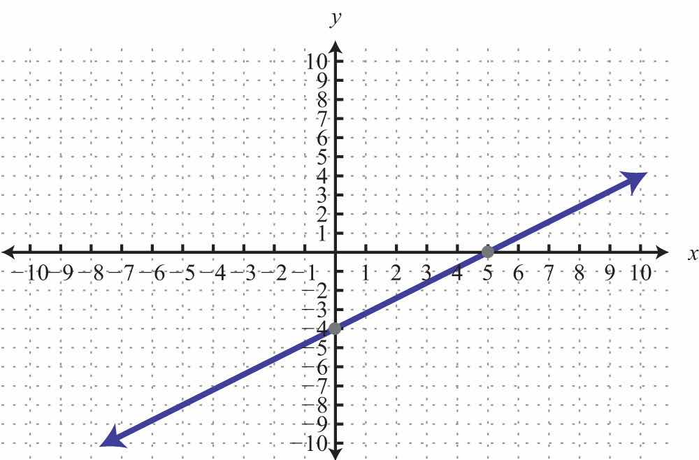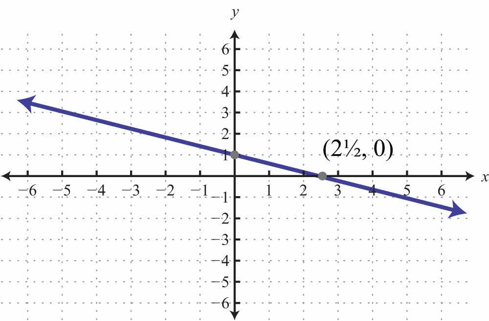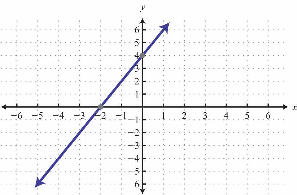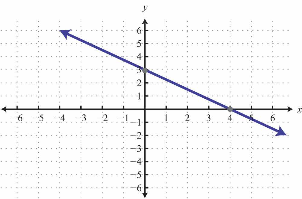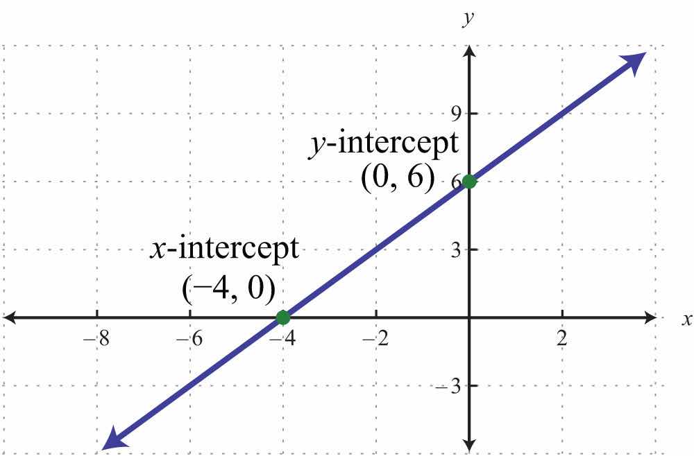 The x-interceptThe point (or points) where a graph intersects the x-axis, expressed as an ordered pair (x, 0). is the point where the graph of a line intersects the x-axis. The y-interceptThe point (or points) where a graph intersects the y-axis, expressed as an ordered pair (0, y). is the point where the graph of a line intersects the y-axis. These points have the form (x, 0) and (0, y), respectively.