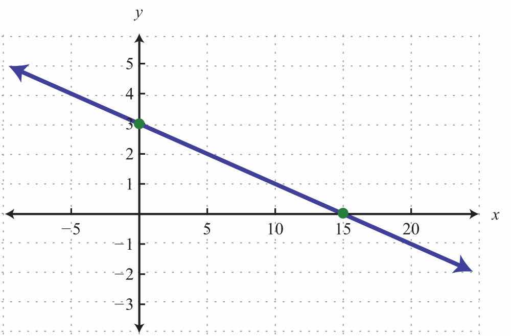 To summarize, any linear equation can be graphed by finding two points and connecting them with a line drawn with a straightedge. Two important and useful points are the x- and y-intercepts; find these points by substituting y = 0 and x = 0, respectively. This method for finding intercepts will be used throughout our study of algebra.