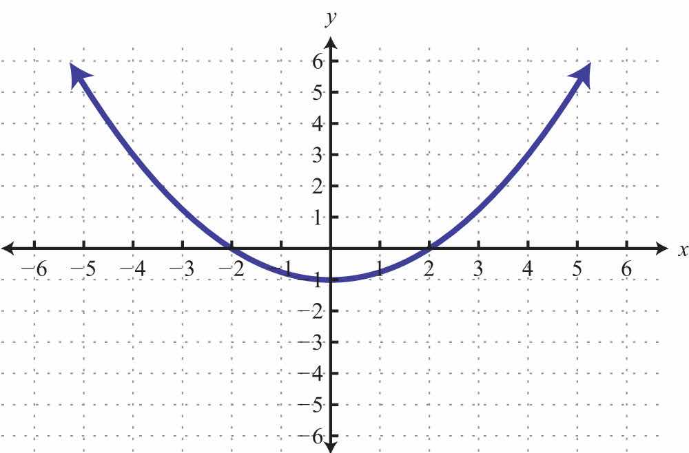 Solution: We see that the graph intersects the x-axis in two places. This graph has two x-intercepts, namely, (−4, 0) and (2, 0). Furthermore, the graph intersects the y-axis in one place. The only y-intercept is (0, −3).