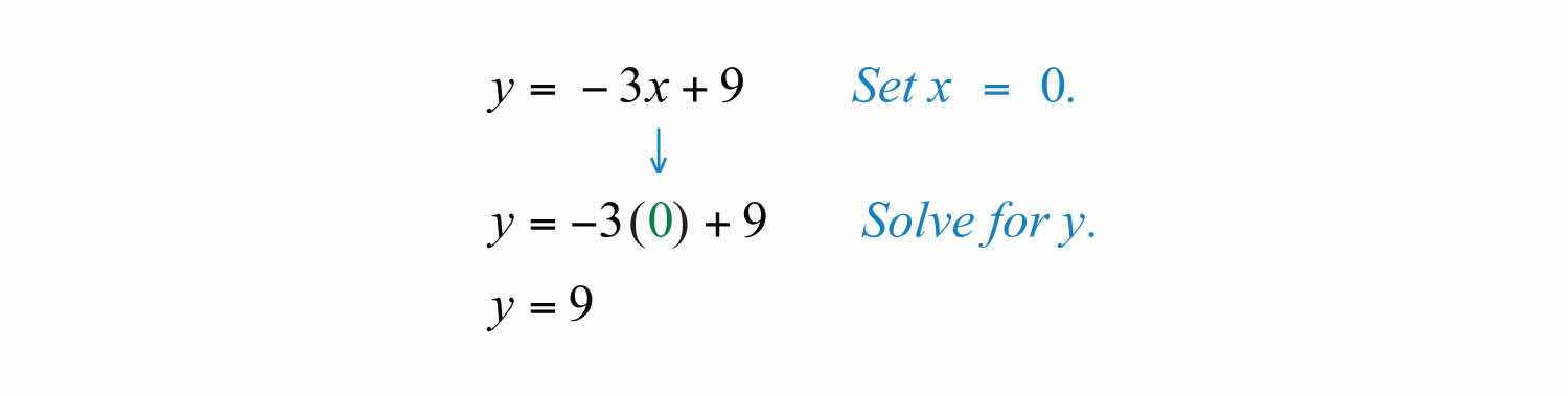 The x-intercept is (3, 0). Next, determine the y-intercept.
