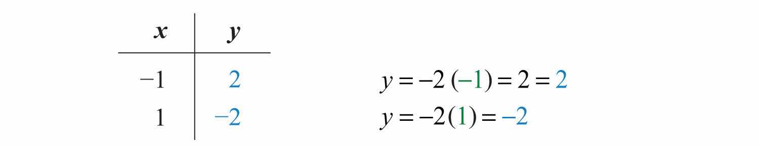 Use the ordered pair solutions (0, 0), (−1, 2), and (1, −2) to graph the line.