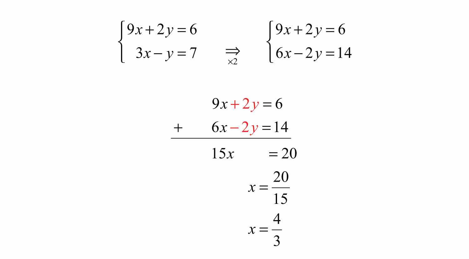 Solve using the elimination method. Multiply the second equation by 2 and add.