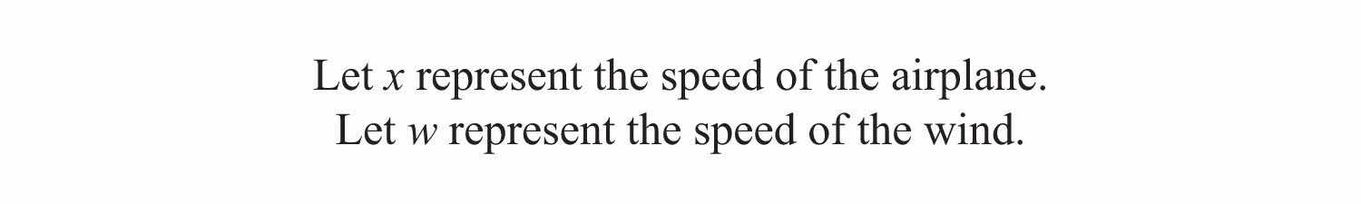 Solution: There is no obvious relationship between the speed of the plane and the speed of the wind. For this reason, use two variables as follows: