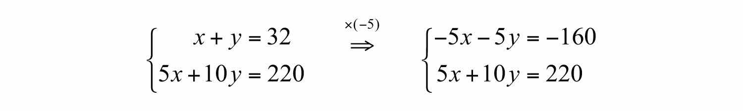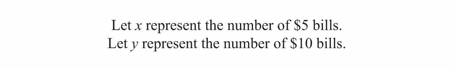Example 3: A roll of 32 bills contains only $5 bills and $10 bills. If the value of the roll is $220, then how many of each bill are in the roll?