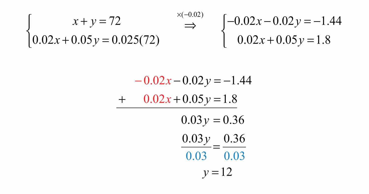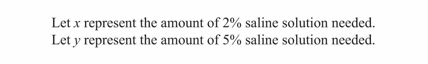 Answer: We need 60 ounces of the 2% saline solution and 12 ounces of the 5% saline solution.
