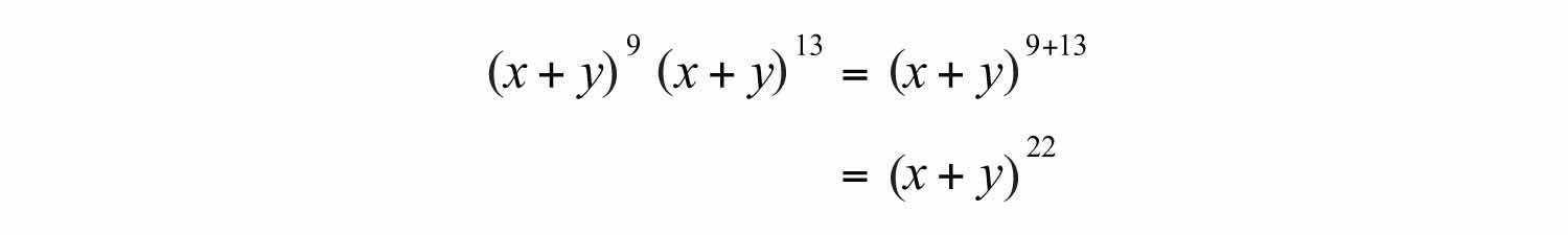 In general, this describes the product rule for exponentsxmxn=xm+n; the product of two expressions with the same base can be simplified by adding the exponents.. If m and n are positive integers, then