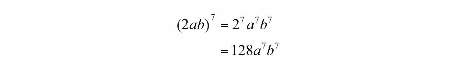 Solution: We must apply the exponent 7 to all the factors, including the coefficient, 2.