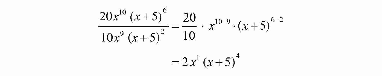 This describes the quotient rule for exponentsxmxn=xmn; the quotient of two expressions with the same base can be simplified by subtracting the exponents.. If m and n are positive integers and x0, then