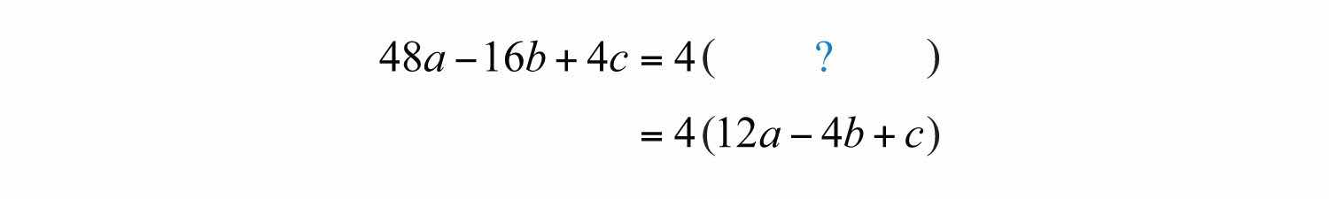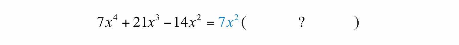 Step 2: Determine the terms of the missing factor by dividing each term of the original expression by the GCF. (This step is usually performed mentally.)