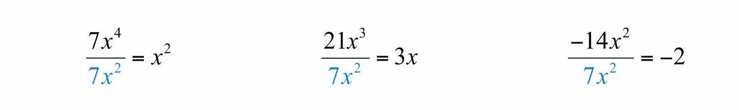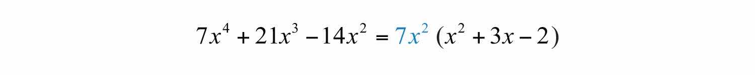 Step 1: Identify the GCF of all the terms. In this case, the GCF(7, 21, 14) = 7, and the common variable factor with the smallest exponent is x2. The GCF of the polynomial is 7x2.
