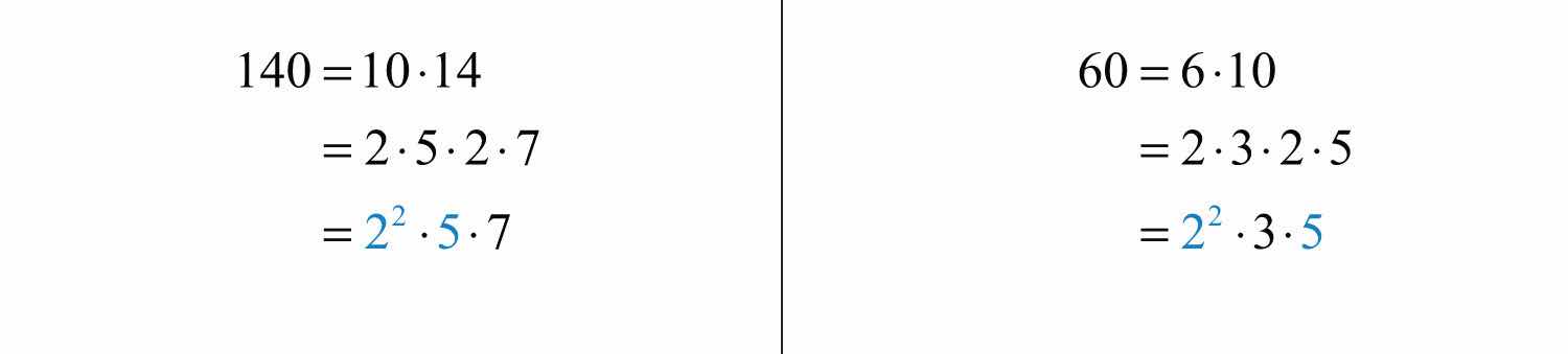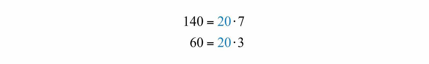 The product of the common prime factors is 2 2 5; hence the GCF(60,140)= 2 25=20. To see that it is the greatest common factor, we can write the following: