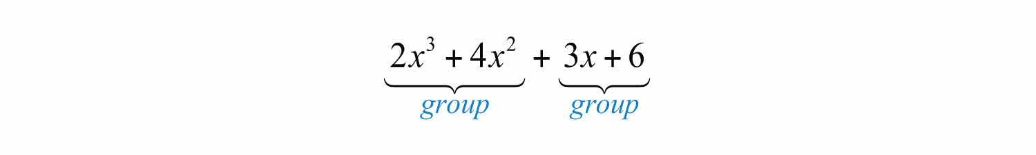 The steps that follow outline a technique for factoring four-term polynomials called factor by groupingA technique for factoring polynomials with four terms..