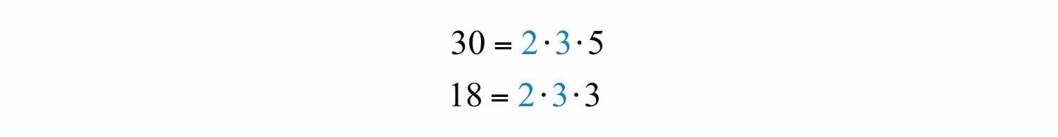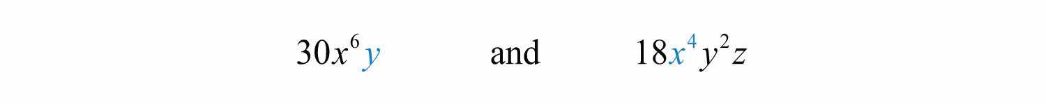 Thus the GCF(30, 18) = 2 ⋅ 3 = 6. Next, consider the variable part:
