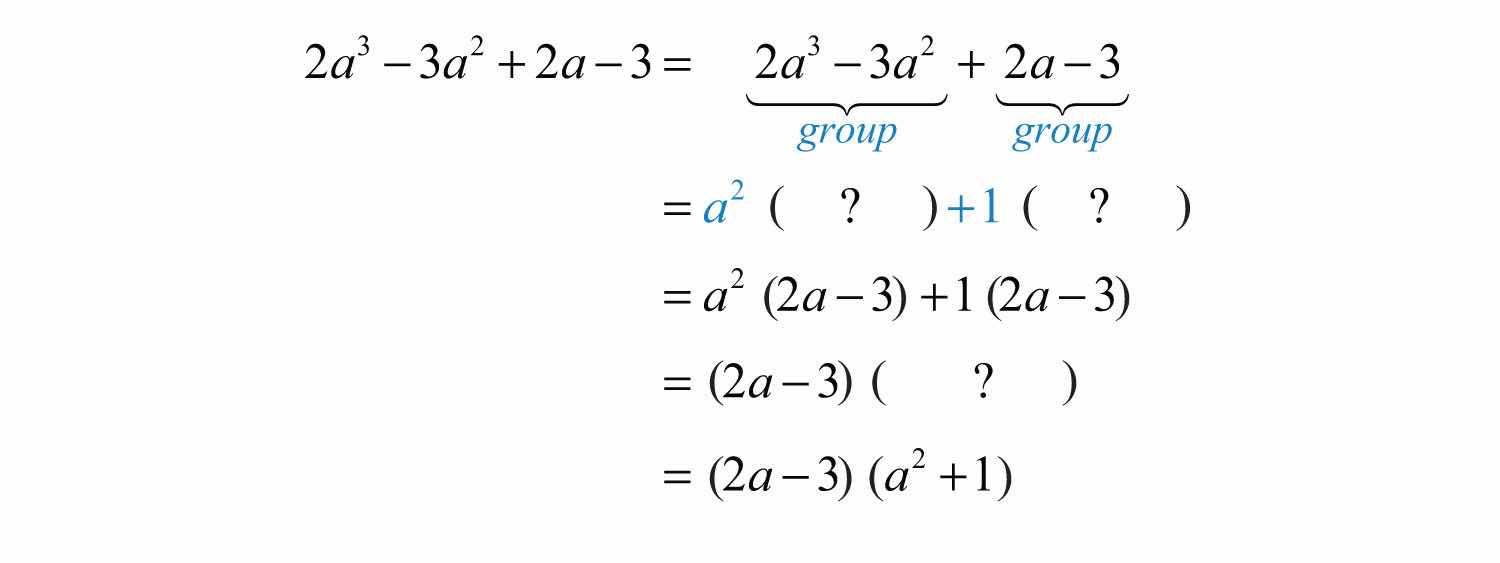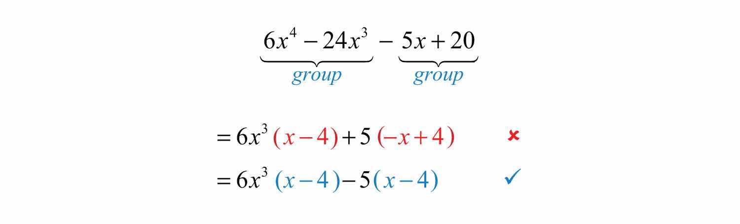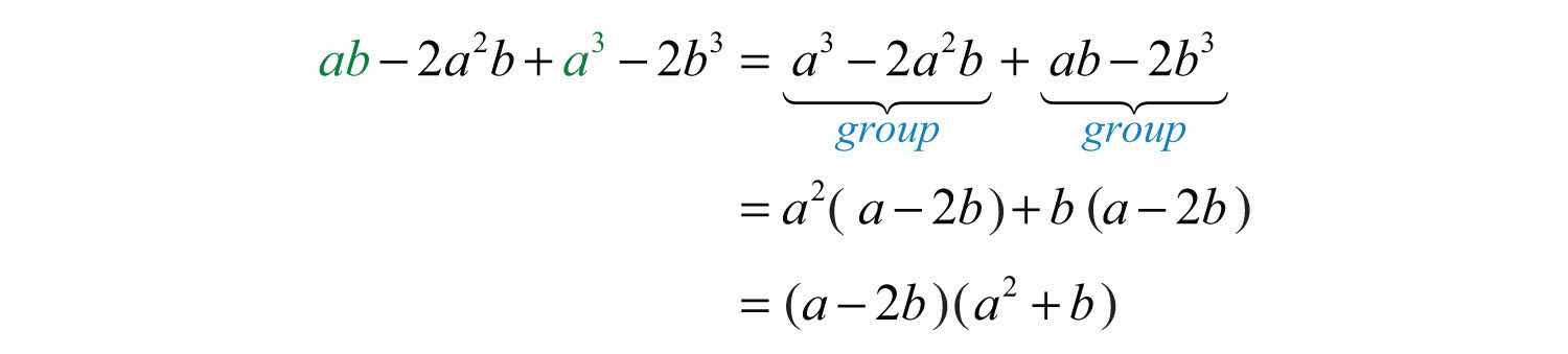 Solution: Group terms in such a way as to obtain a binomial with common factors.