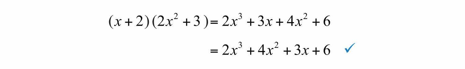 Step 4: As a check, multiply using the distributive property to verify that the product equals the original expression. (This step is optional and can be performed mentally.)