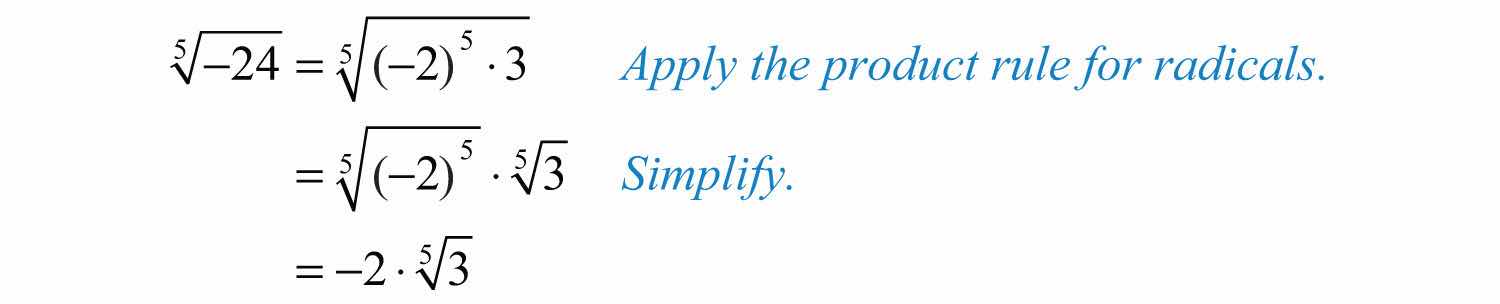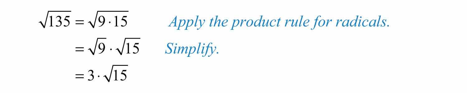 It will not always be the case that the radicand is a perfect power of the given index. If not, we use the following two properties to simplify them. If a and b represent positive real numbers, then we have