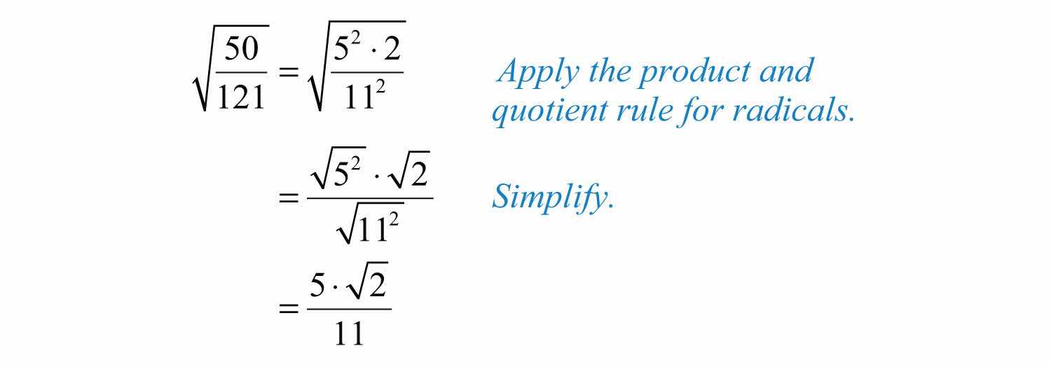 Quotient rule for radicalsabn=anbn, where a and b represent positive real numbers.: