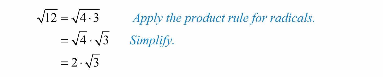 Solution: Here 12 can be written as 4 ⋅ 3, where 4 is a perfect square.