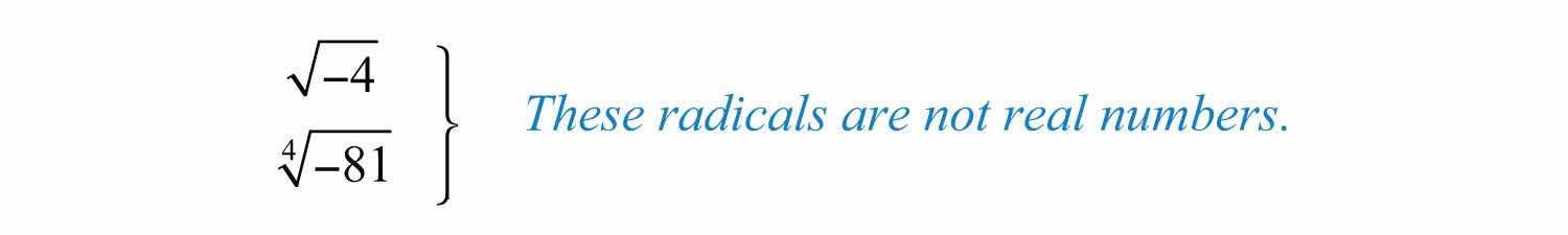 We have seen that the square root of a negative number is not real because any real number, when squared, will result in a positive number. In fact, a similar problem arises for any even index: