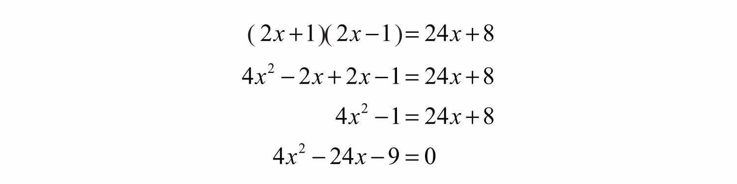 Example 6: Solve using the quadratic formula: (2x+1)(2x1)=24x+8.