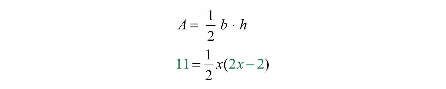 Use the formula and the fact that the area is 11 square inches to set up an algebraic equation.
