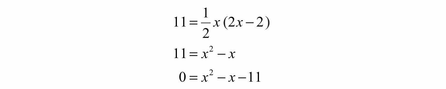 Example 10: The height of a triangle is 2 inches less than twice the length of its base. If the total area of the triangle is 11 square inches, then find the lengths of the base and height. Round answers to the nearest hundredth.