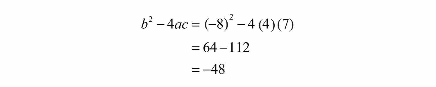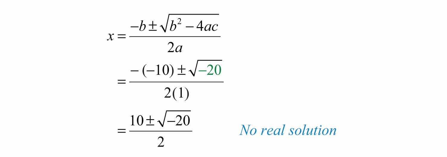 If we use the quadratic formula in the previous example, we find that a negative radicand stops the process of simplification and shows that there is no real solution.