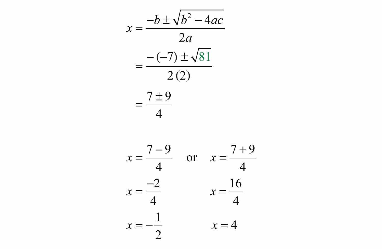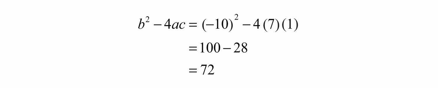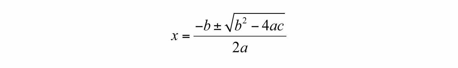 We could solve the previous quadratic equation using the quadratic formula as follows: