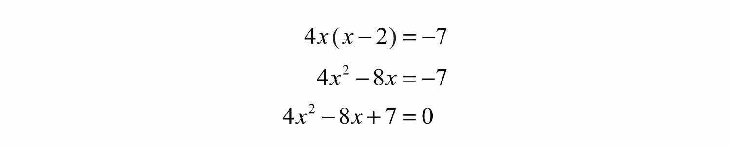 Solution: Begin by rewriting the quadratic equation in standard form.