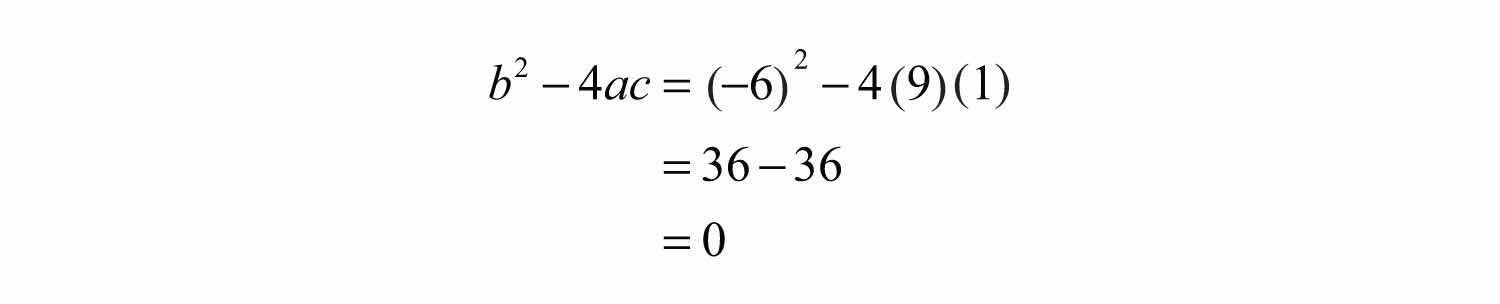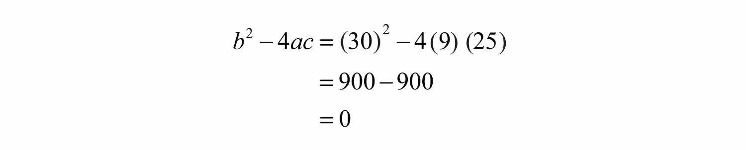Substitute a = 9, b = 30, and c = 25 into the discriminant.