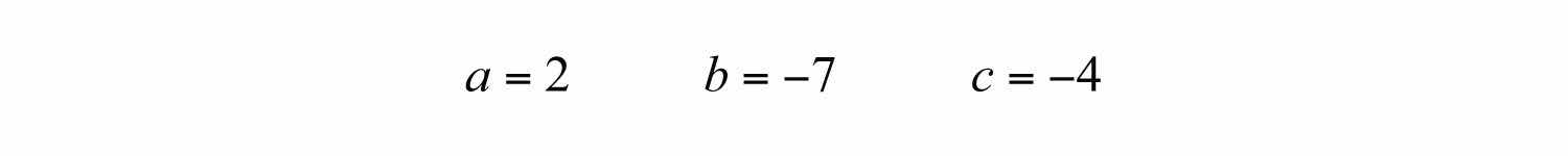 Solution: Begin by identifying a, b, and c as the coefficients of each term. Here