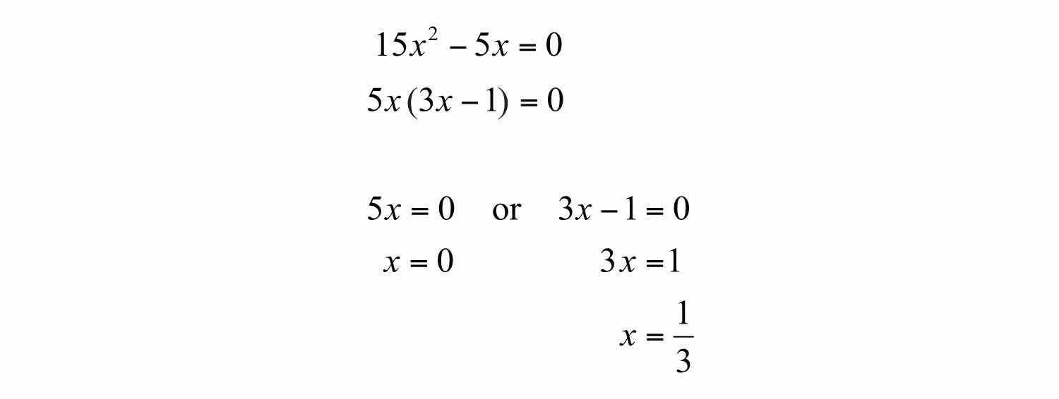 Solution: In this case, c = 0 and we can solve by factoring out the GCF.