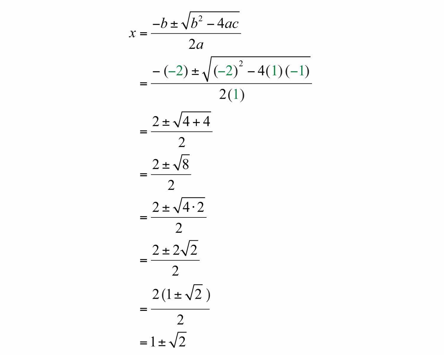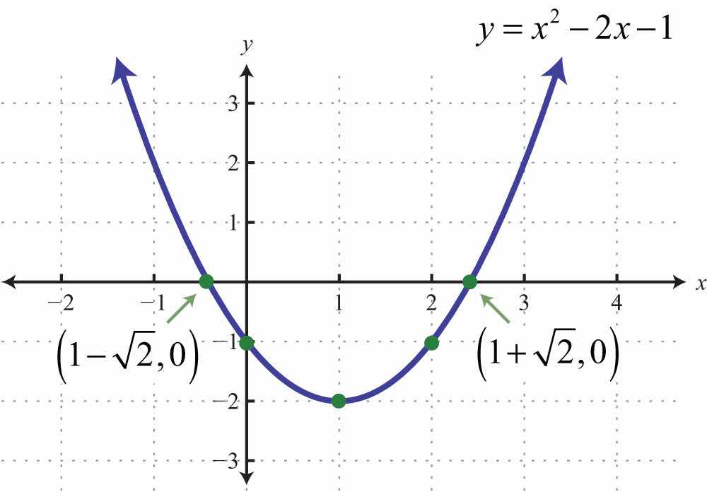 In this case, solve using the quadratic formula with a = 1, b = −2, and c = −1.